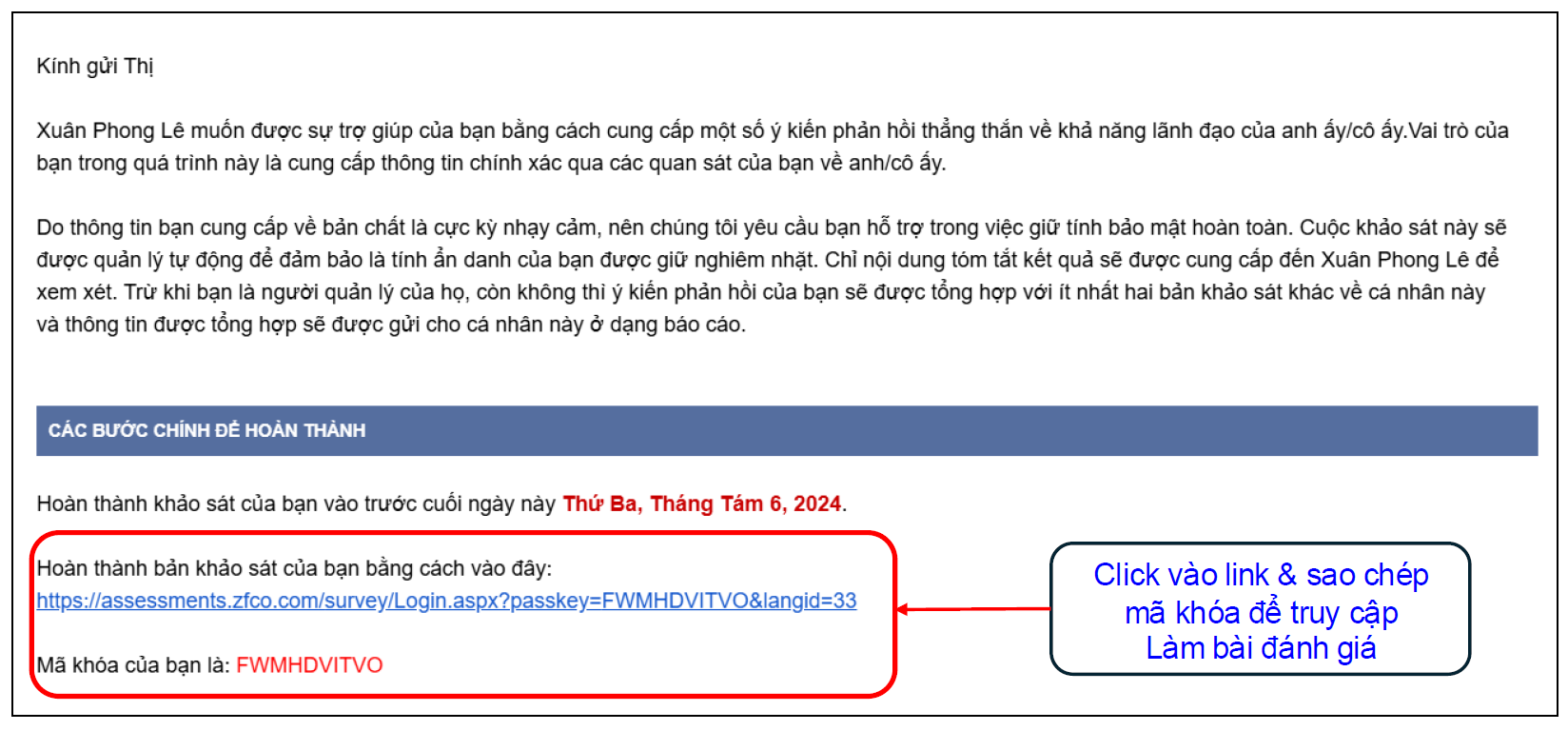VI. Hướng dẫn thực hiện đánh giá cho NGƯỜI ĐÁNH GIÁ – RATERS: Nhận email từ hệ thống ZF