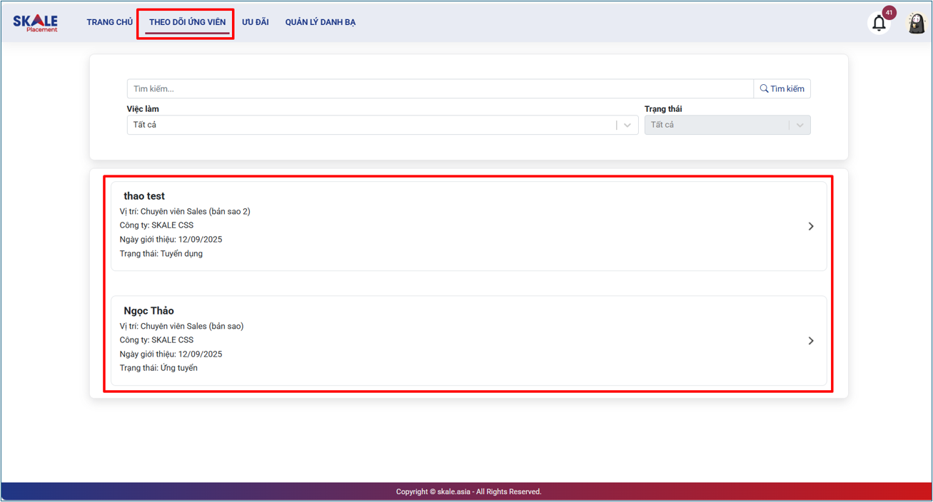 SKALE PLACEMENT: Tin tuyển dụng _ Theo dõi ứng viên