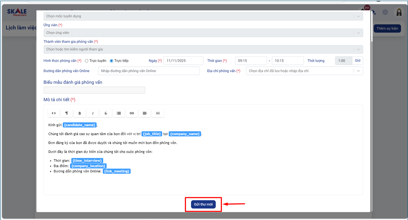 • Thành viên tham gia phỏng vấn : Thêm người phỏng vấn (Hội đồng tuyển dụng) sẽ tham gia.