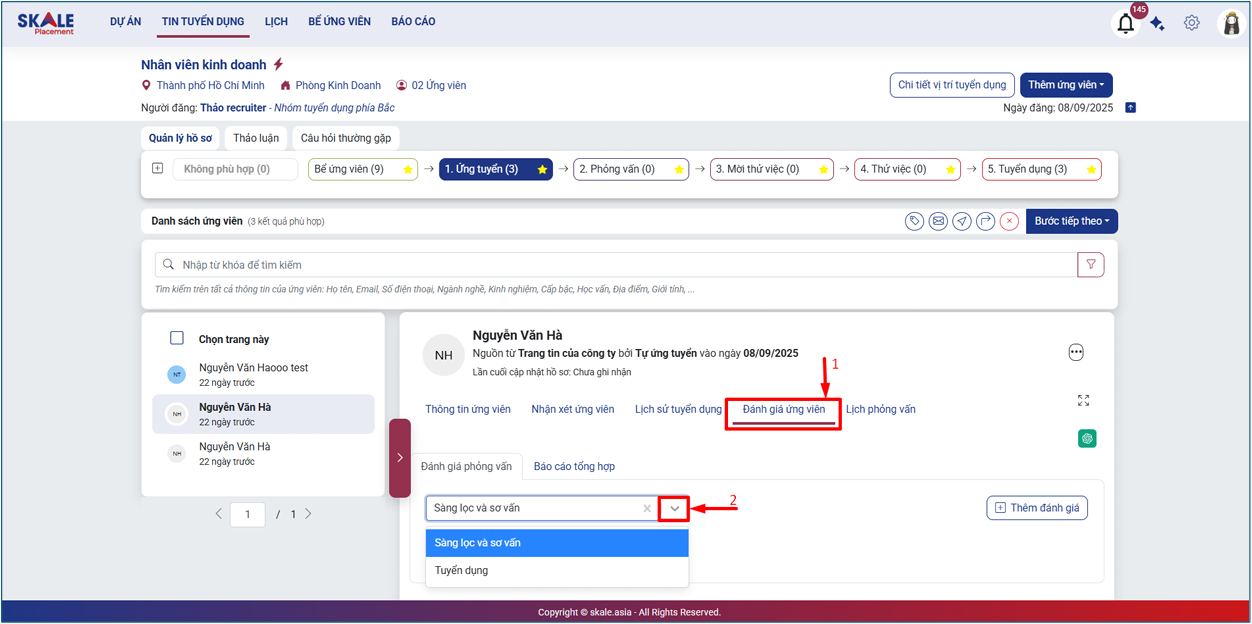 SKALE PLACEMENT: Tin tuyển dụng _ Đánh giá ứng viên