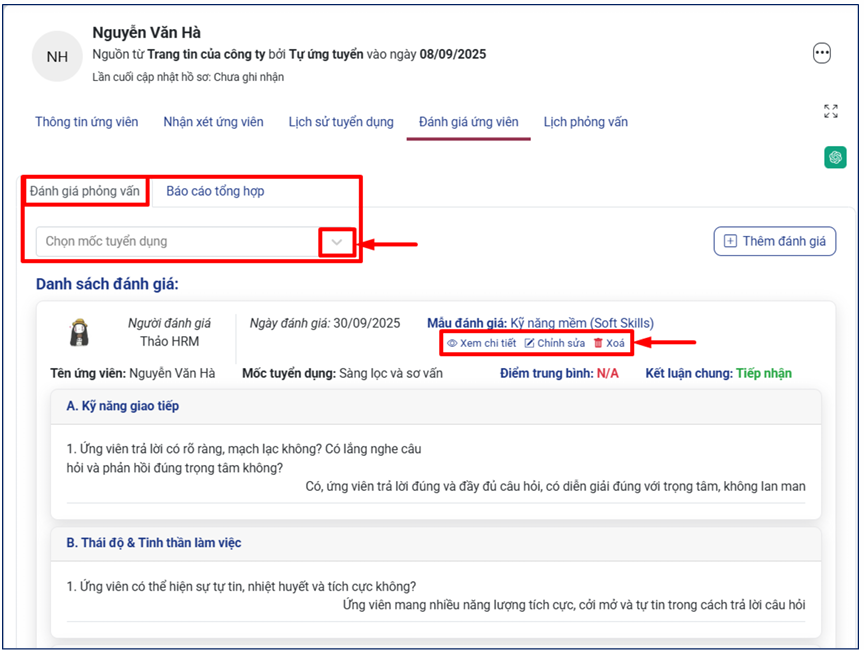[2] Xem kết quả bài đánh giá (Mỗi mốc tuyển dụng chỉ có tối đa 1 bài đánh giá)