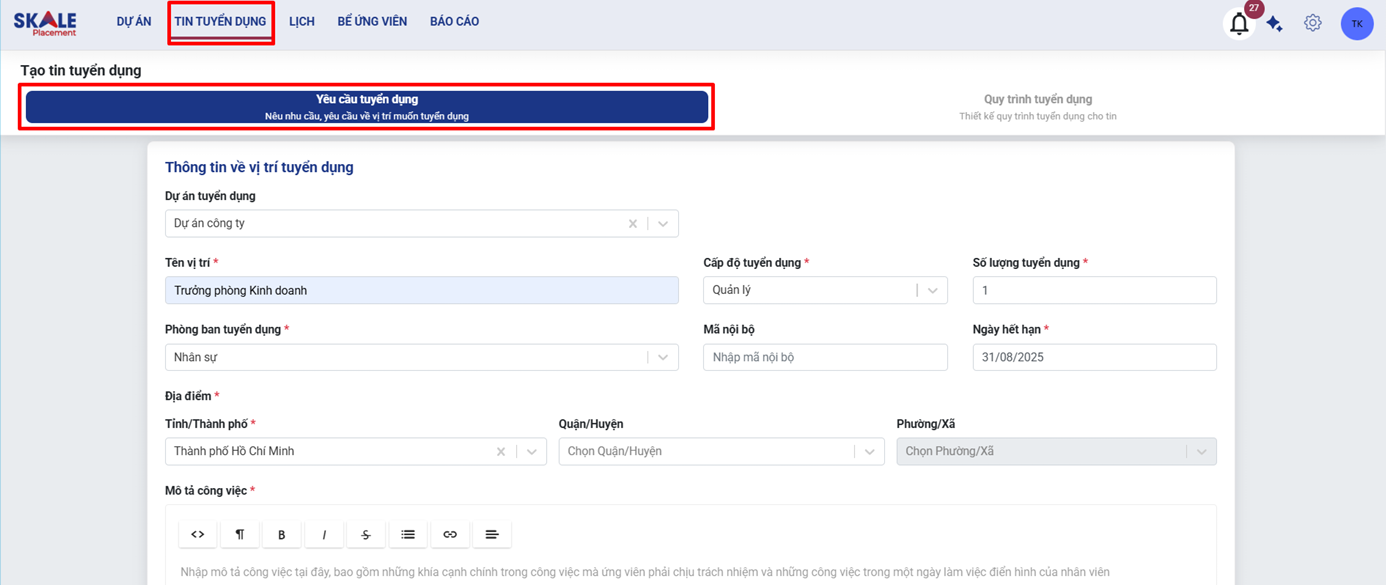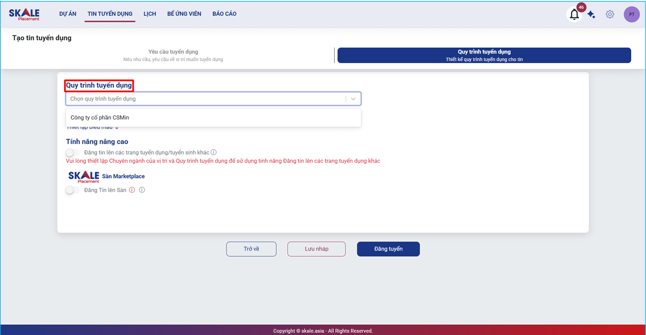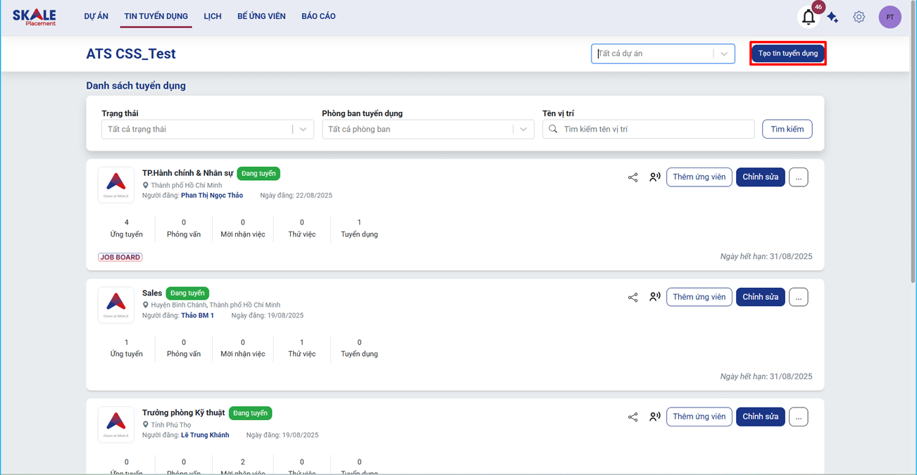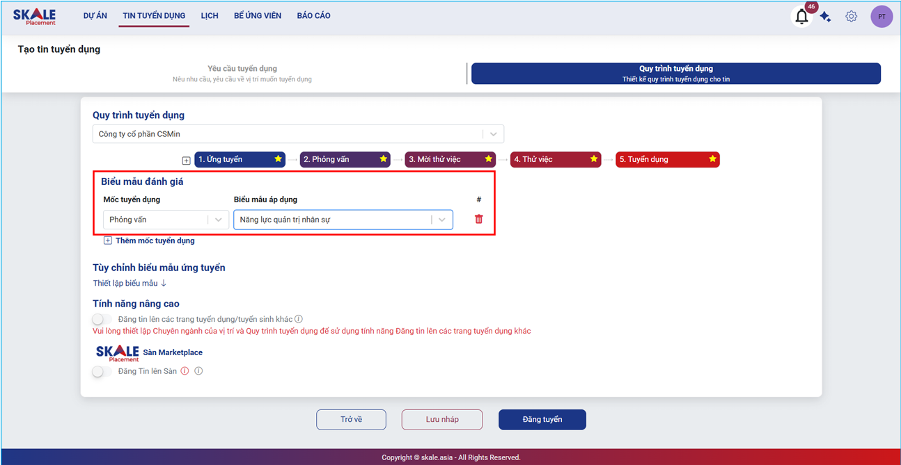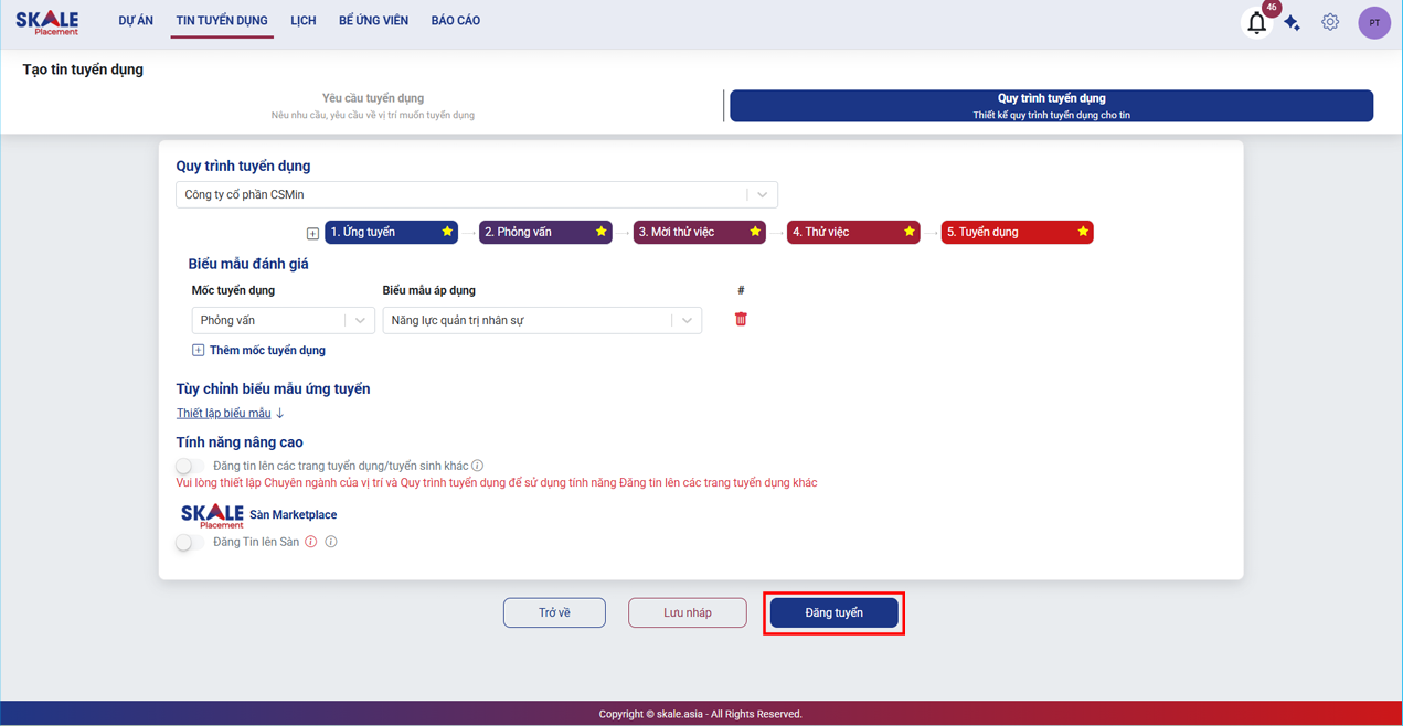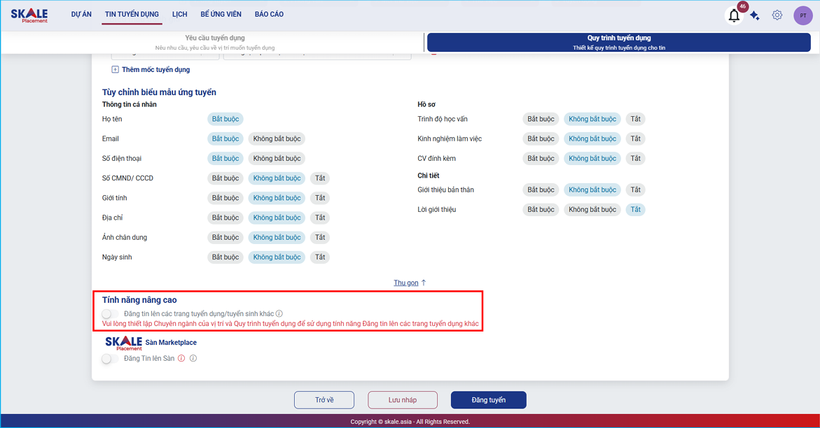 SKALE PLACEMENT: Tin tuyển dụng _ Tạo và đăng tin tuyển dụng