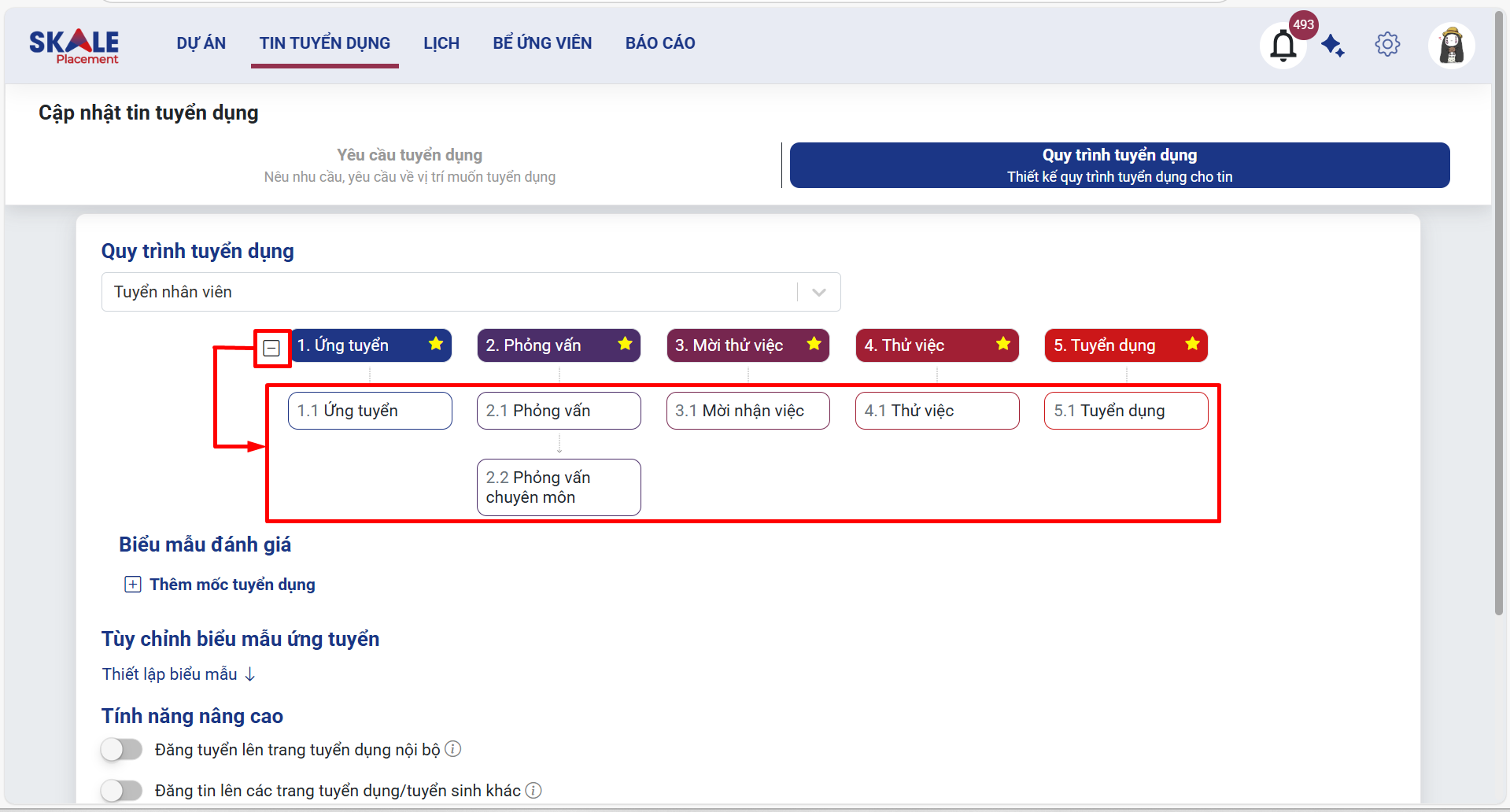 Bước 4: Xem lại các mốc thuộc "Quy trình tuyển dụng" vừa áp dụng cho tin đăng