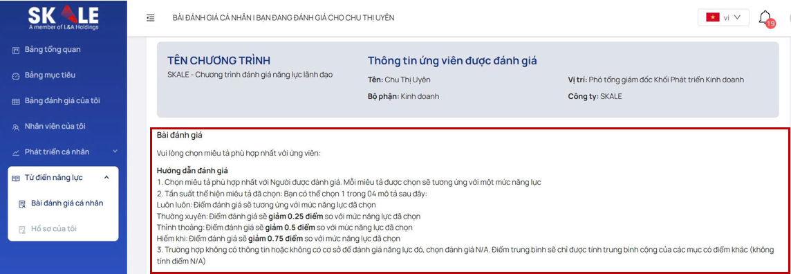 *Lưu ý: Hướng dẫn đánh giá ở mỗi chương trình đánh giá sẽ khác nhau.