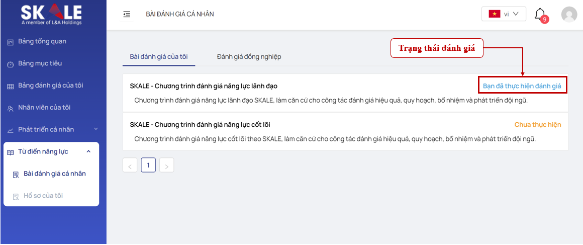 Bước 5: Sau khi thực hiện xong bài đánh giá, bạn có thể theo dõi trạng thái bài đánh giá của mình tại đây.