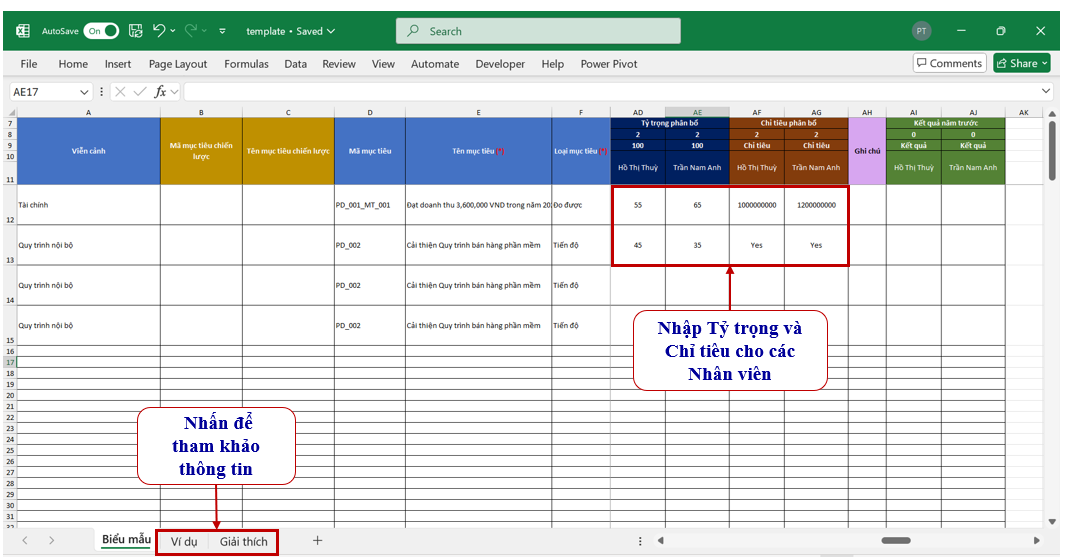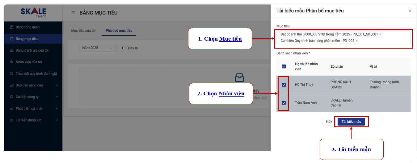 Chọn các mục tiêu và nhân viên muốn phân bổ. Sau đó, tải biểu mẫu.