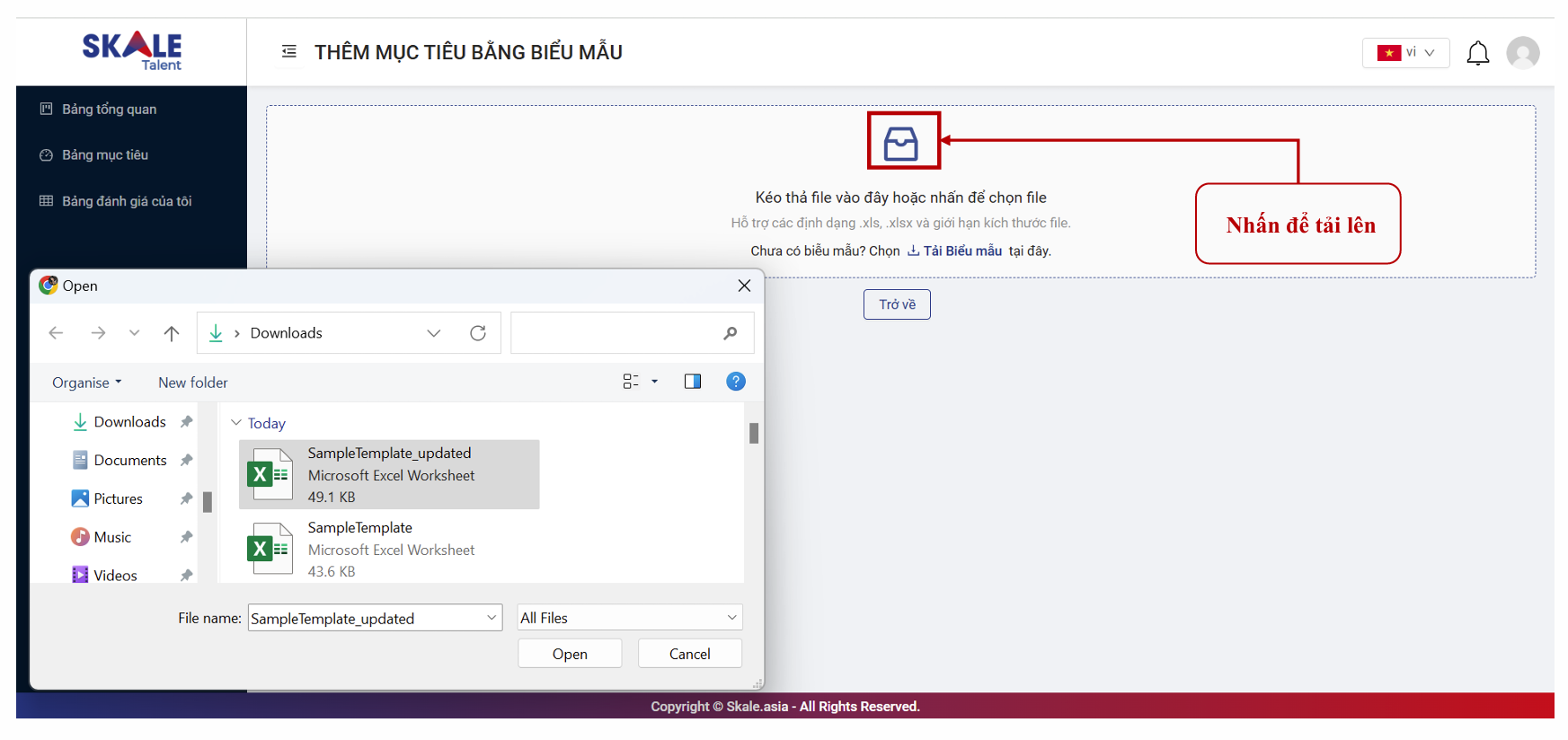 Lưu ý: File được tải về sẽ hiển thị dưới tên SampleTemplate.xlsx