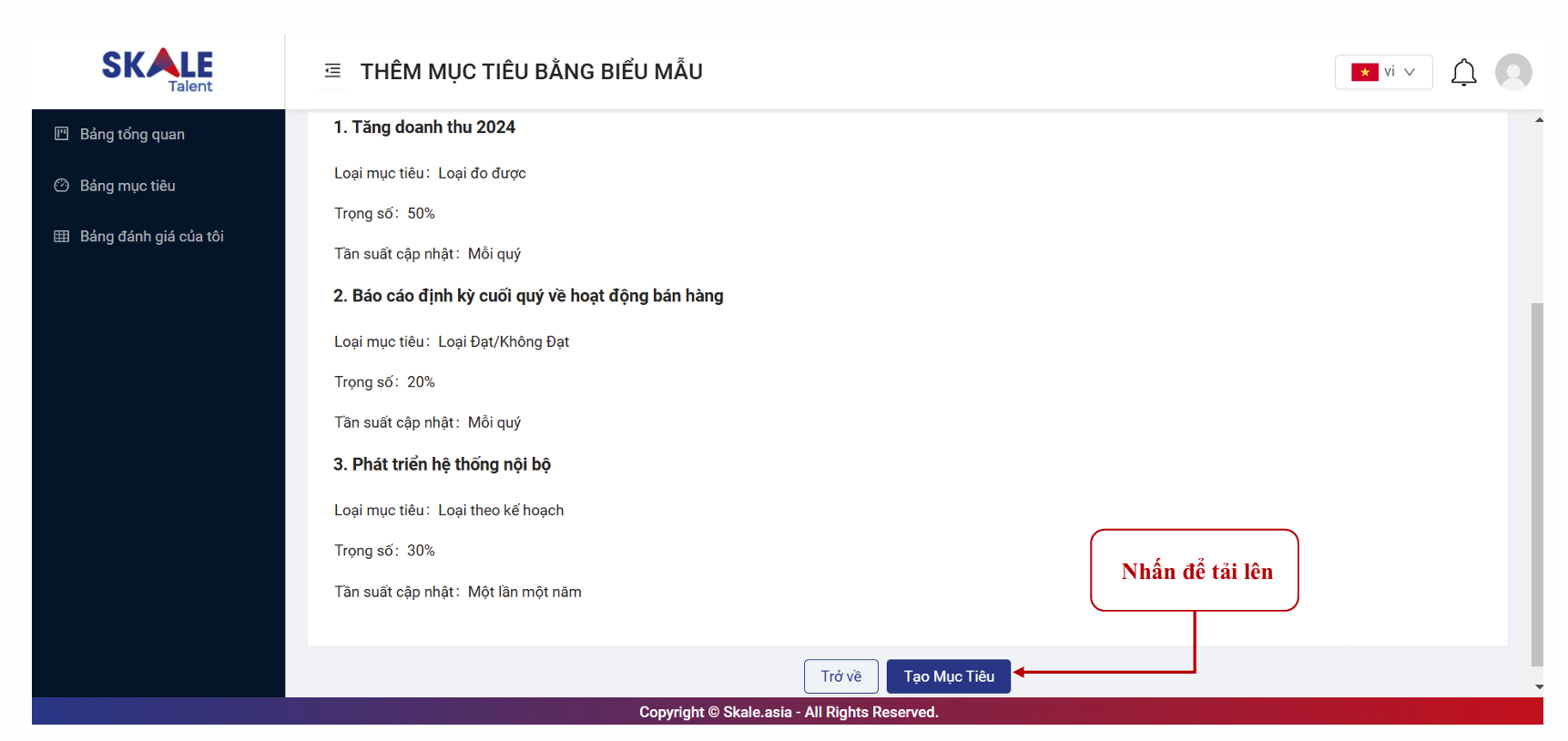 - Hệ thống sẽ hiển thị bộ mục tiêu vừa tải để bạn kiểm tra trước khi xác nhận tải lên.