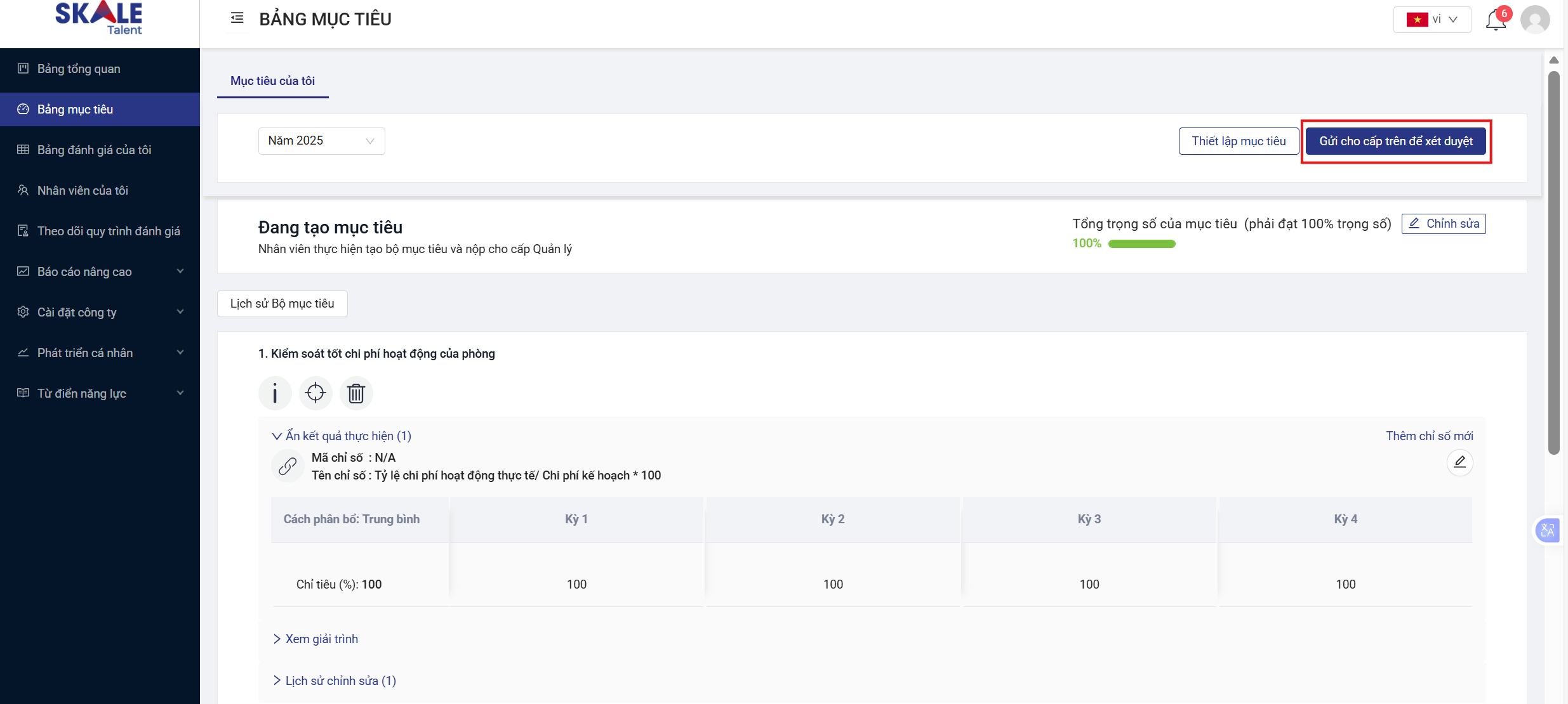 Sau khi hoàn tất bộ mục tiêu cá nhân, Nhân viên kiểm tra lại và gửi cho cấp trên để xét duyệt
