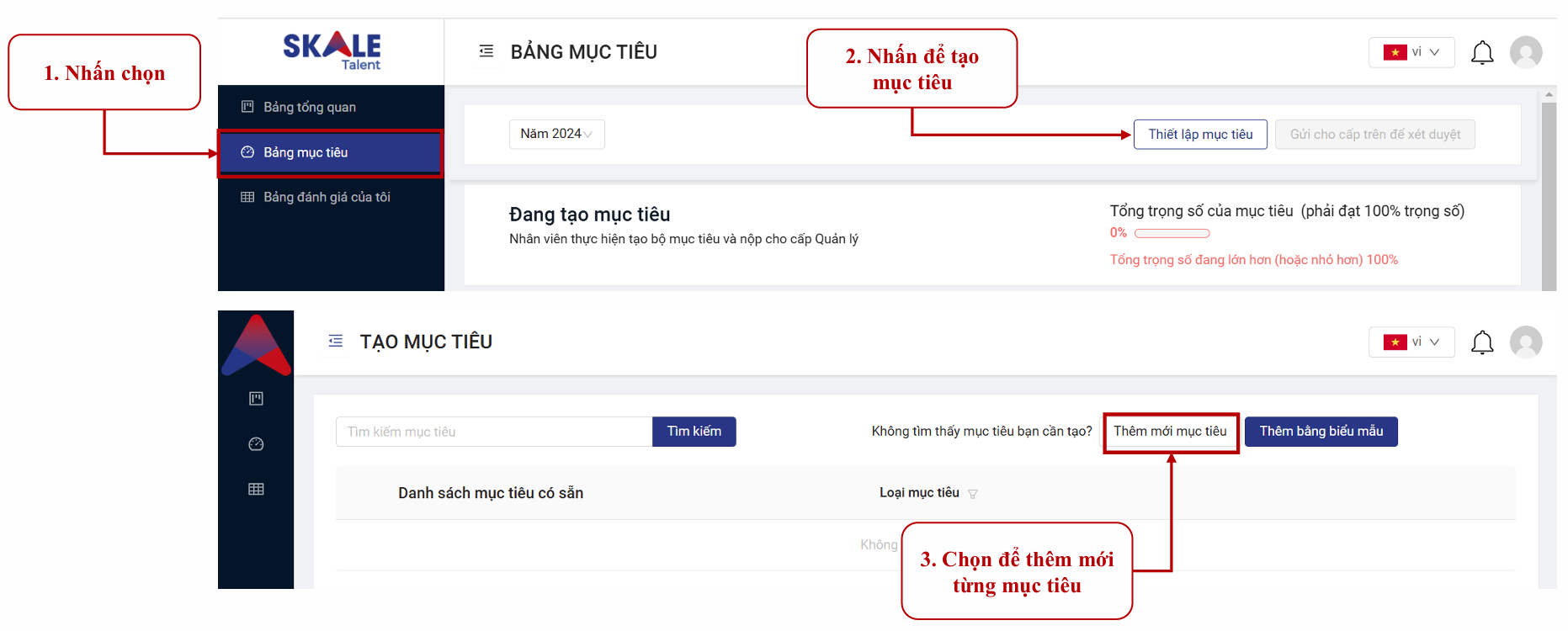 - Nhấn chọn "Bảng mục tiêu"
