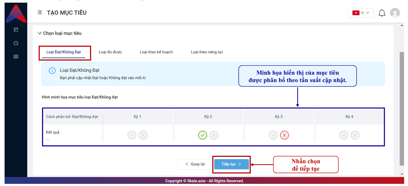 Bước 2.2. Mục tiêu "Loại Đạt/Không đạt"