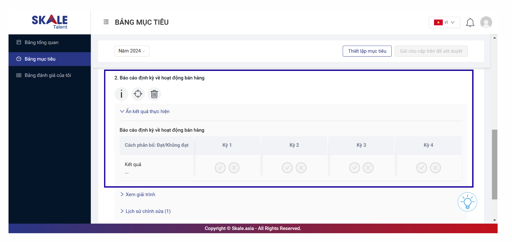 - Kỳ đánh giá: Chọn kỳ đánh giá, mục tiêu sẽ tự động bỏ qua các kỳ không được chọn.