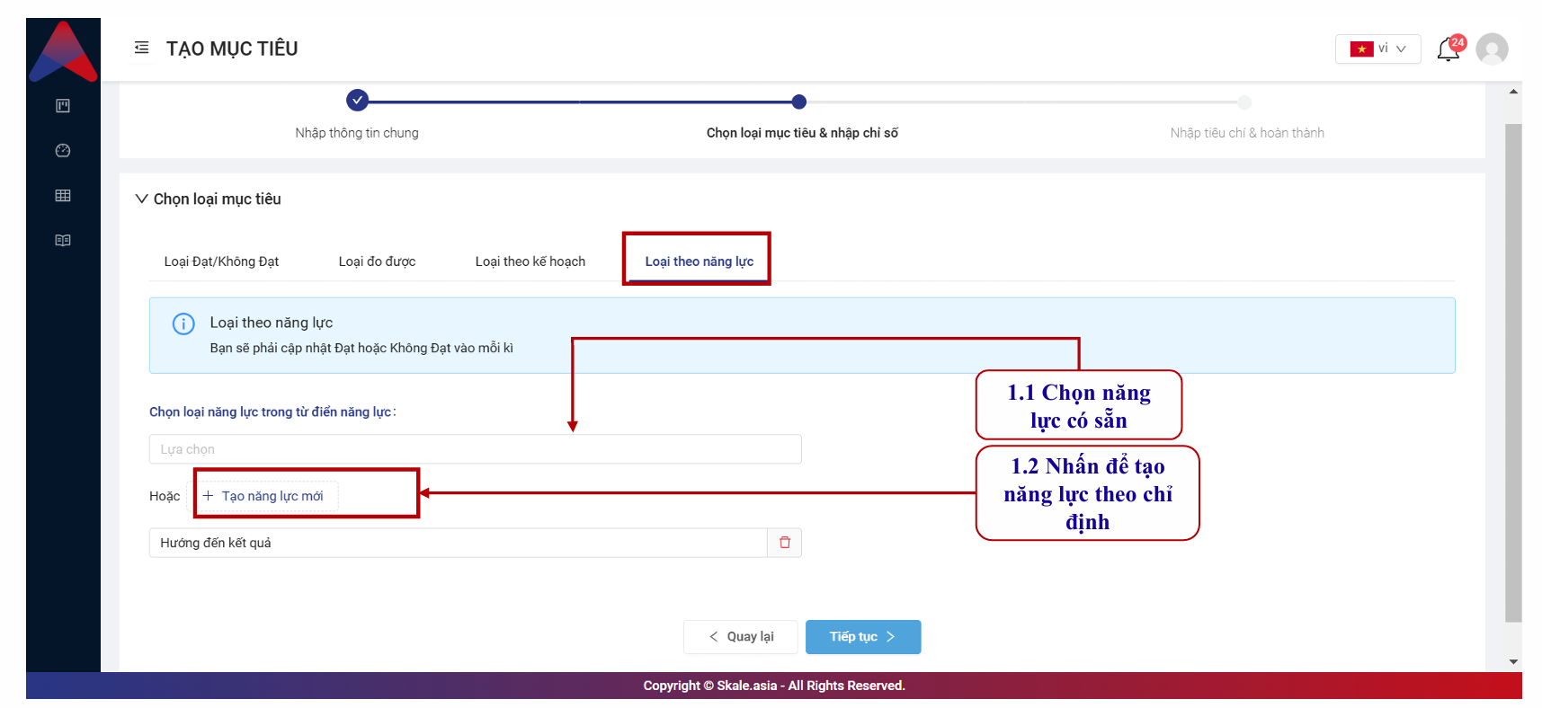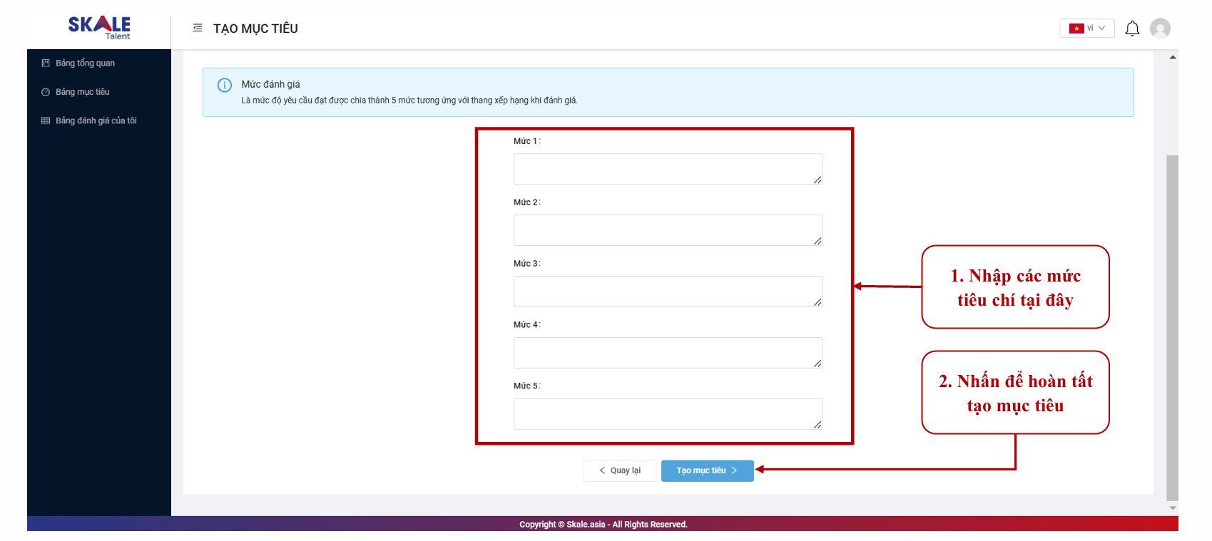 SKALE PERFORMANCE: Thiết lập mục tiêu _ Tạo bộ mục tiêu cá nhân - Nhập thủ công