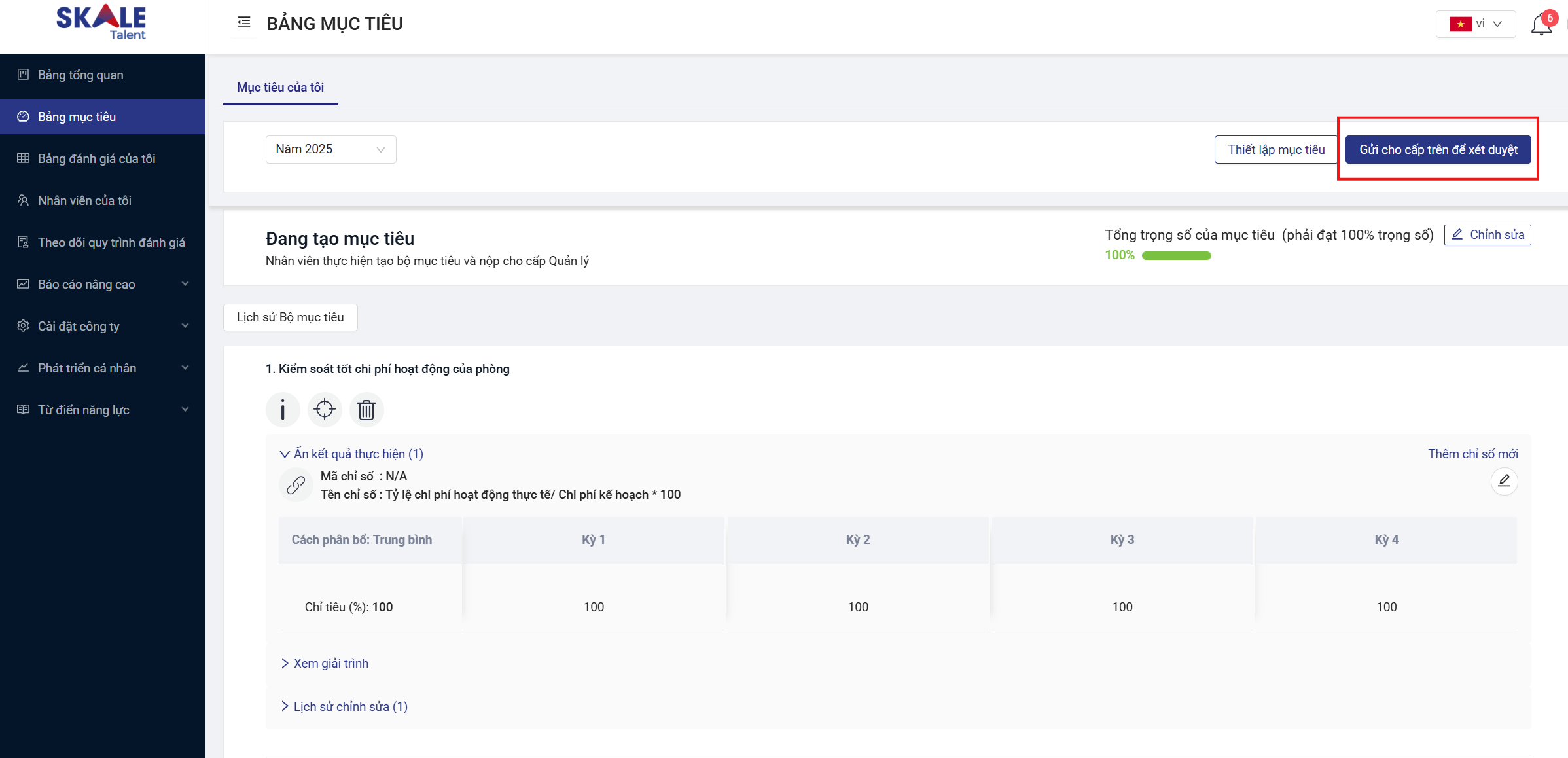Bước 3: Gửi cho cấp trên xét duyệt bộ mục tiêu