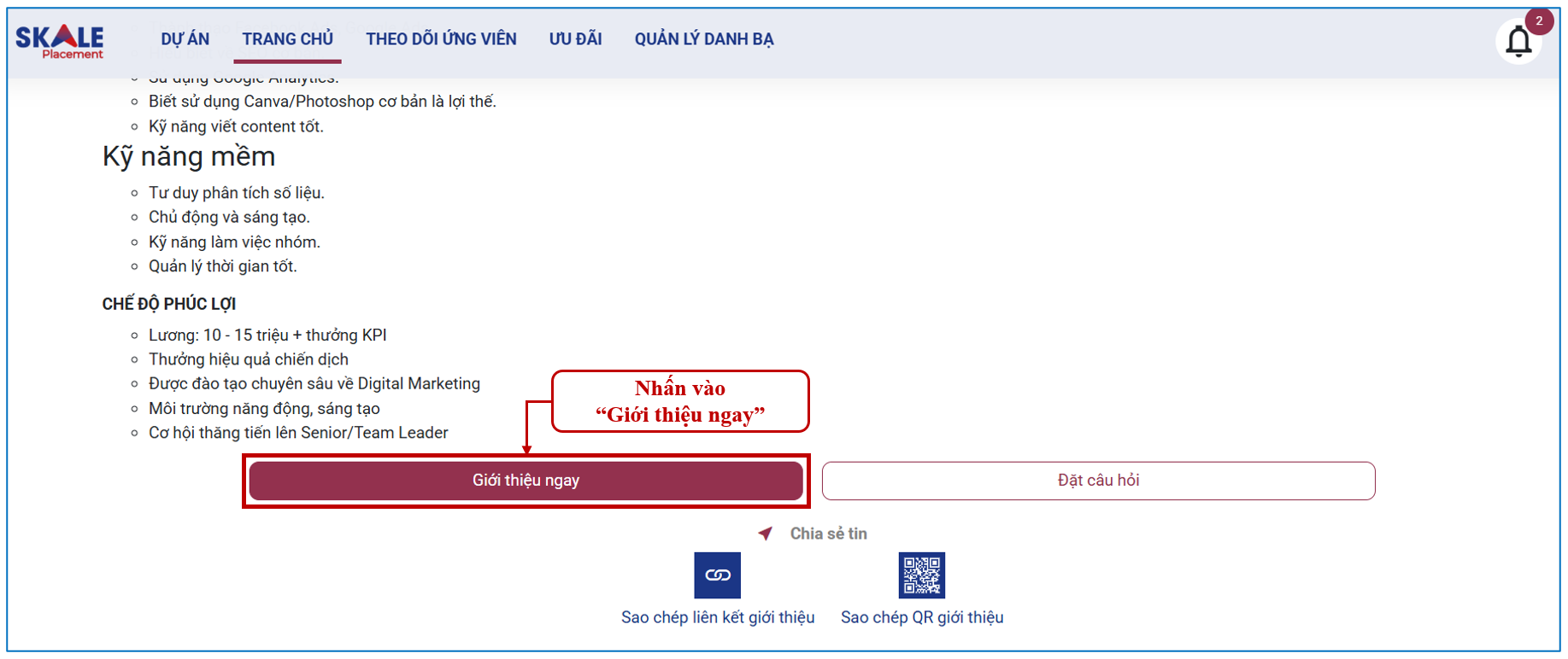 SKALE PLACEMENT: Giới thiệu ứng viên vào tin tuyển dụng