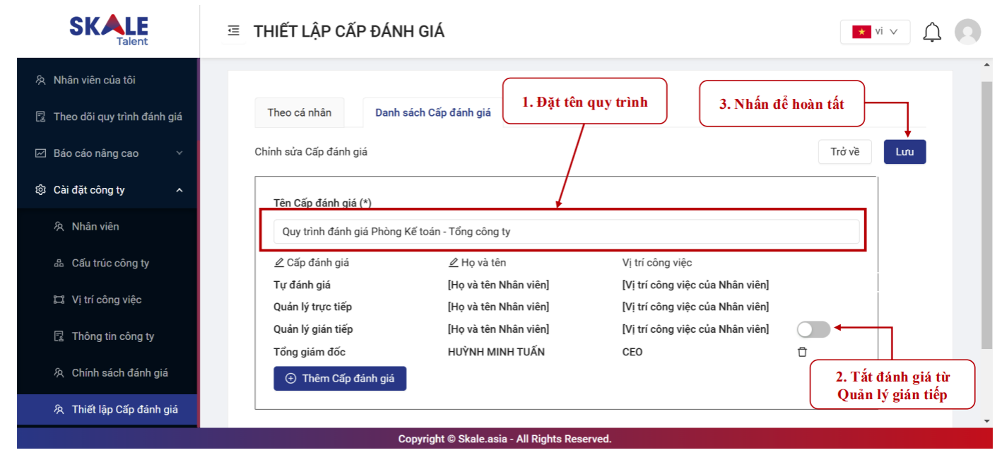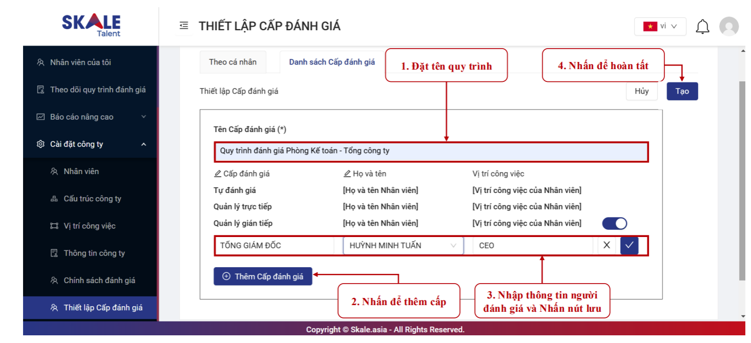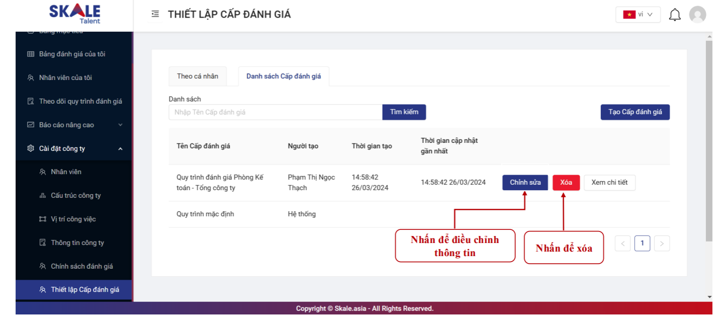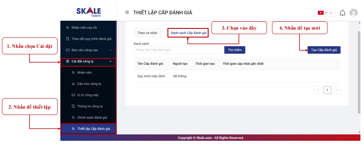 SKALE TALENT ADMIN: Thiết lập chung _ Thiết lập Cấp đánh giá