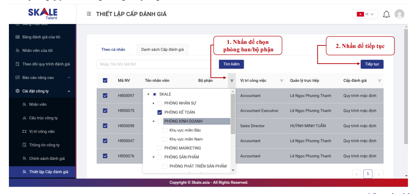 Ví dụ: Áp dụng quy trình đánh giá riêng cho phòng kế toán.