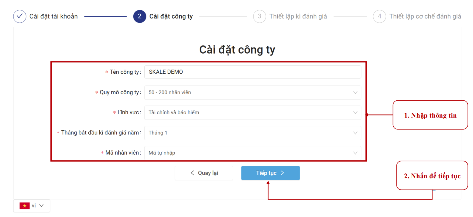 Bước 3: Cài đặt thông tin công ty