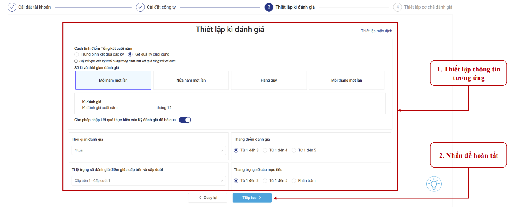 Bước 4: Thiết lập kì đánh giá năm