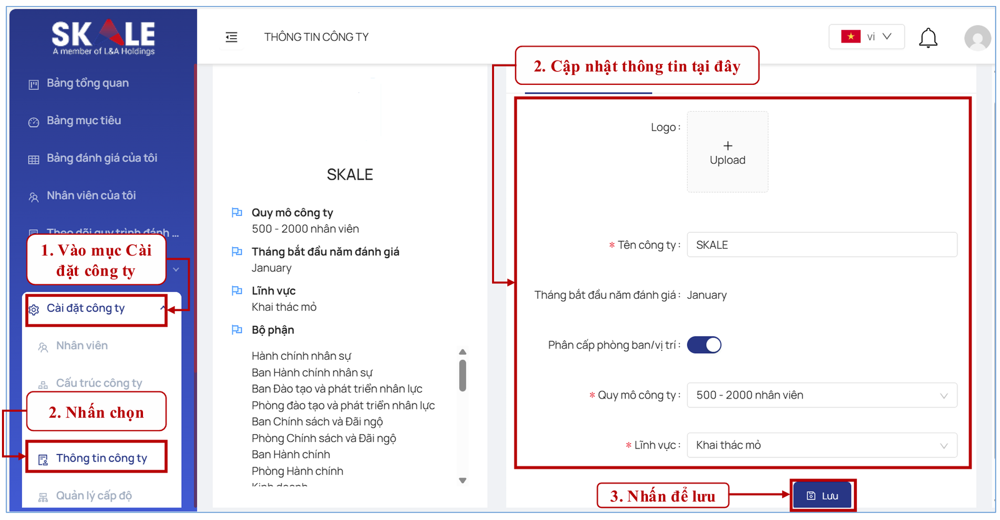 SKALE TALENT ADMIN: Thiết lập chung _Tài khoản - Cập nhật thông tin