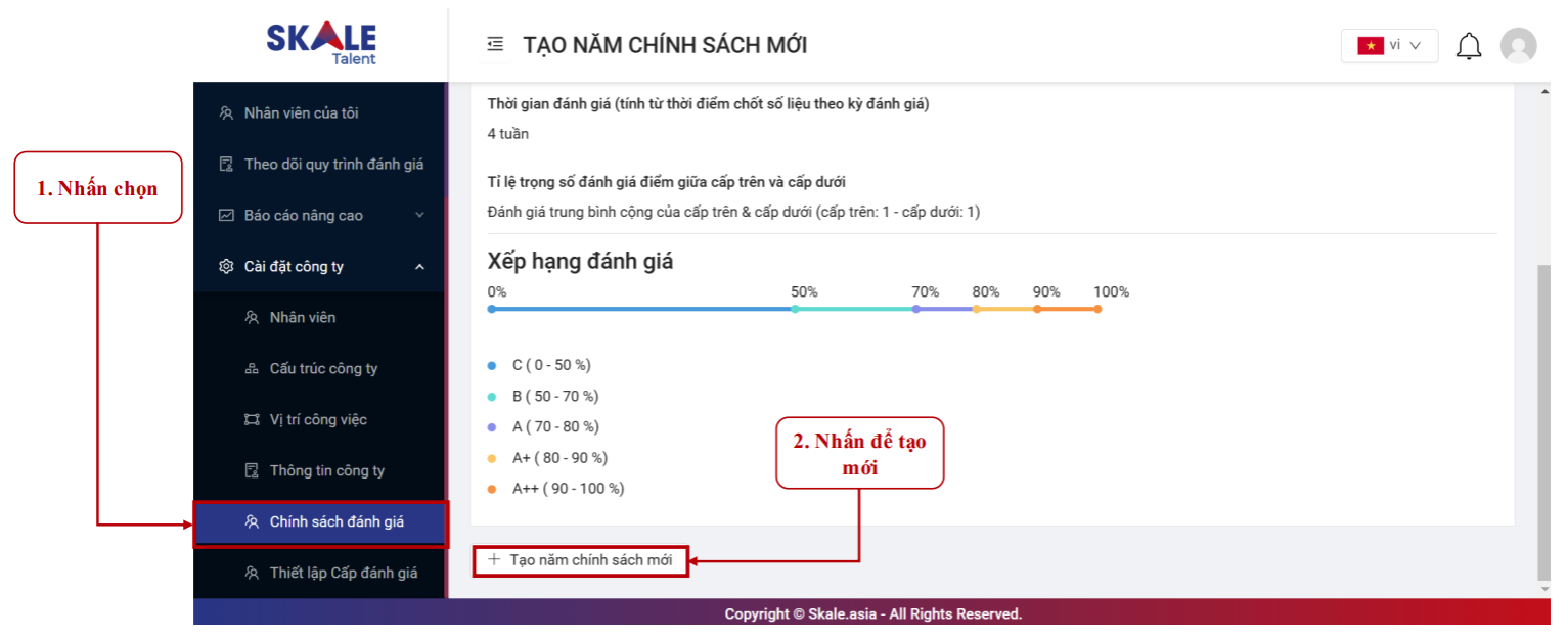SKALE TALENT ADMIN: Triển khai chương trình đánh giá _ Tạo chính sách đánh giá mới